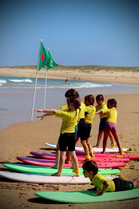 Séance découverte du surf en groupe d’enfants entre 5/10 ans ou pour un groupe ados/adultes super débutants.